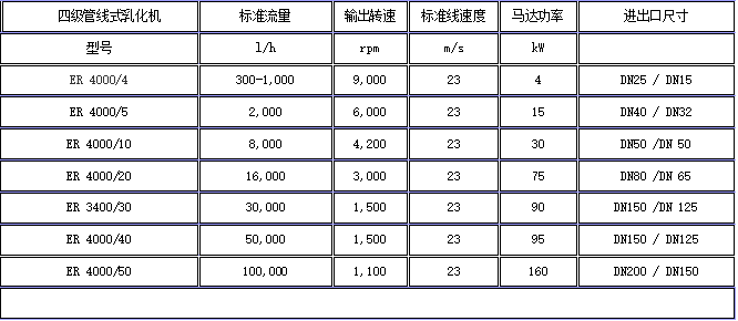 ER4000系列四级高剪切在线分散机具有非常高的剪切速度和剪切力,粒径约为0.1-2微米可以确保高速分散乳化的稳定性。该设备可以适用于各种分散乳化工艺,也可用于生产包括对乳状液,悬浮液和胶体的均质混合。高剪切分散乳化机由定/转子系统生的剪切力使得溶质转移速度增加,从而使单一分子和宏观分子媒介的分解加速。